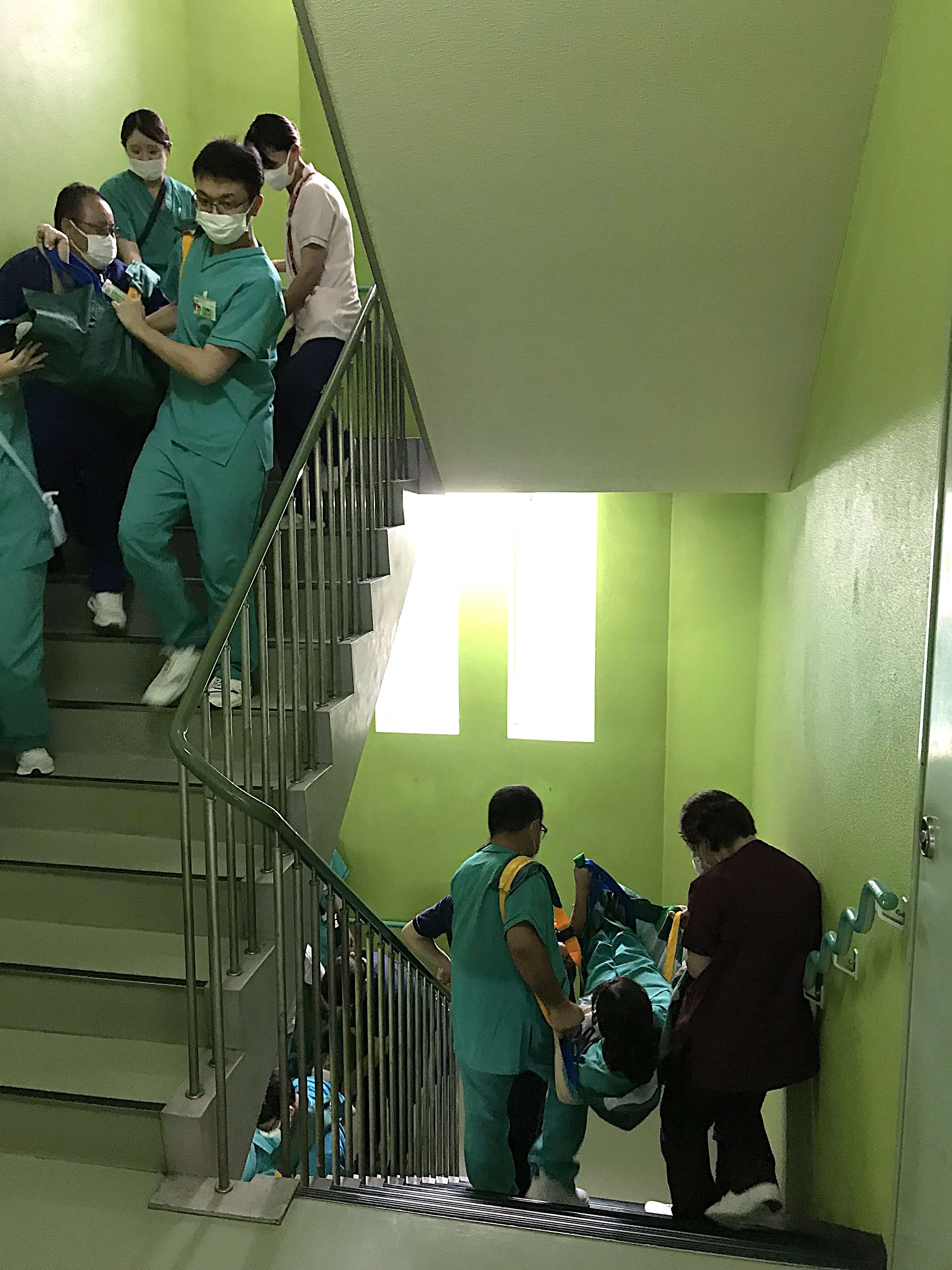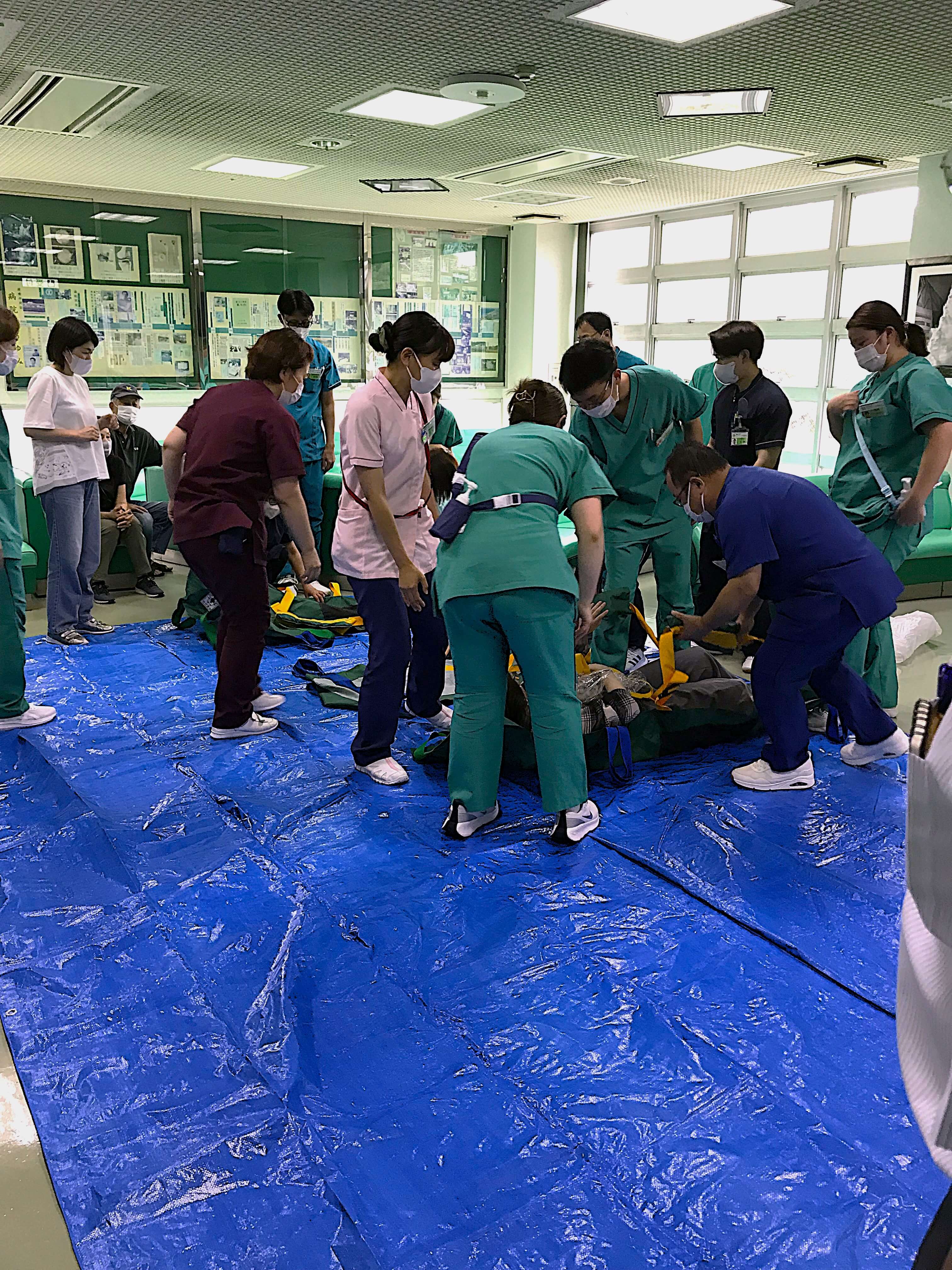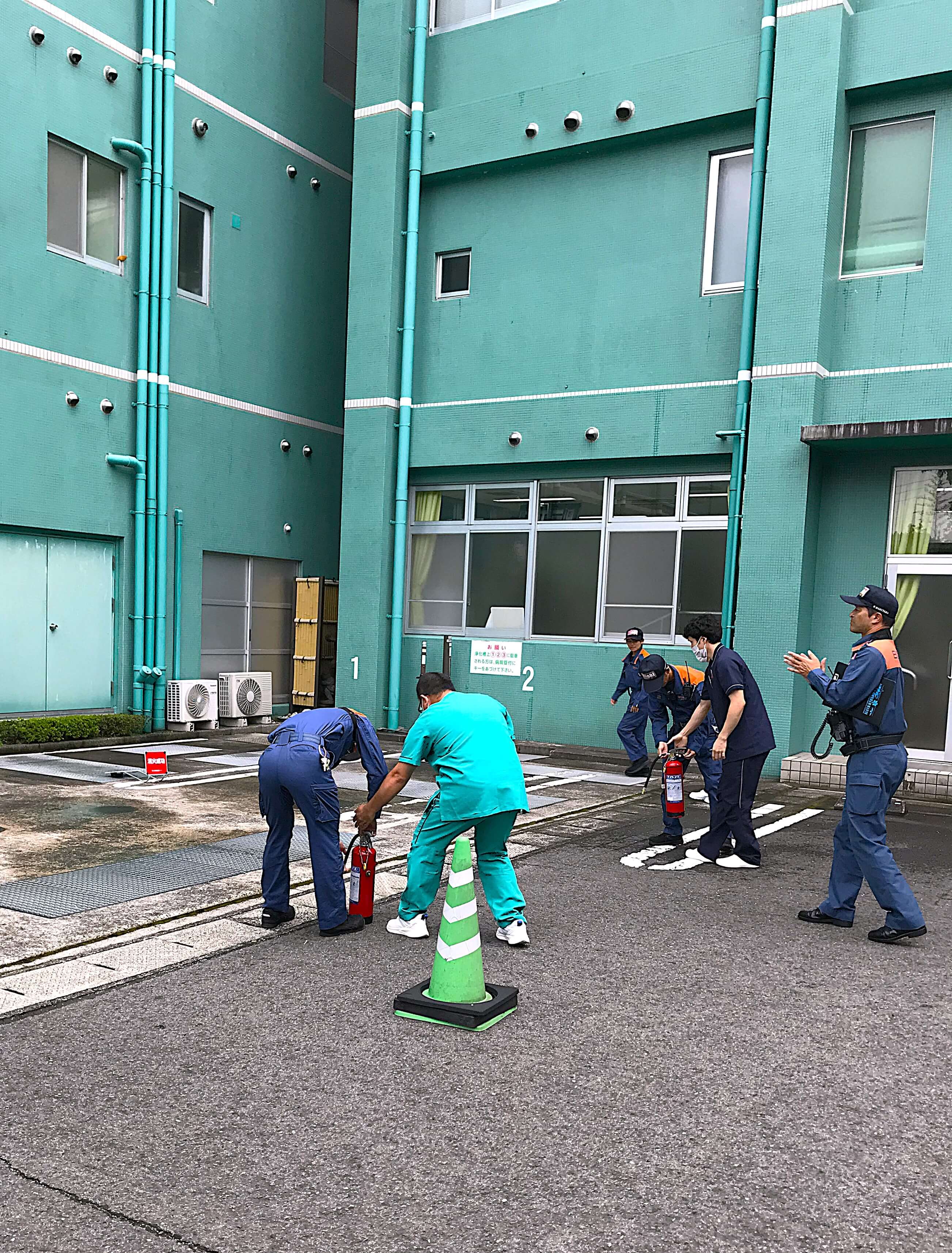 2025/10/22 | ブログ 2025年の防災訓練 地域連携室の吉永です。 10/20に日置市消防本部の消防士の方にご協力いただき防災訓練を実施しました。 避難誘導訓練、水消火器を使った消火訓練を行いました。 職員全員、真剣に取り組んでいました。 いつ起きるか分からない万が一の時に備え、外来患者、入院患者が安全に避難していただくことができるように今回の総合防災訓練で学んだことを活かしていきたいと思います。